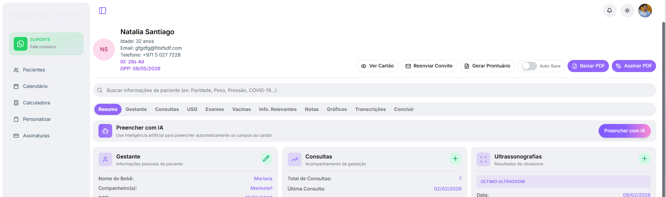 Prontuário pré-natal digital com acompanhamento gestacional completo