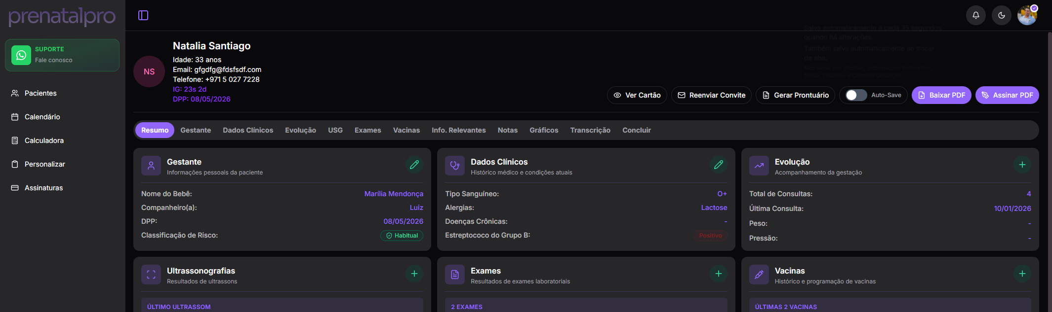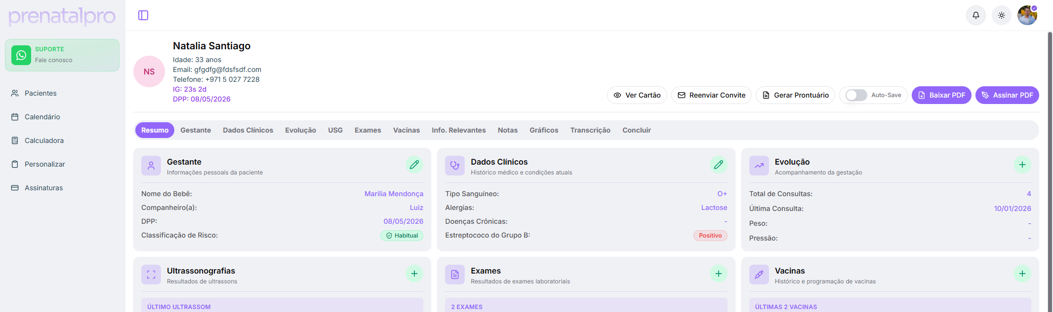 Gere o cartão pré-natal em PDF completo, organizado e pronto para compartilhamento clínico, sempre que necessário.